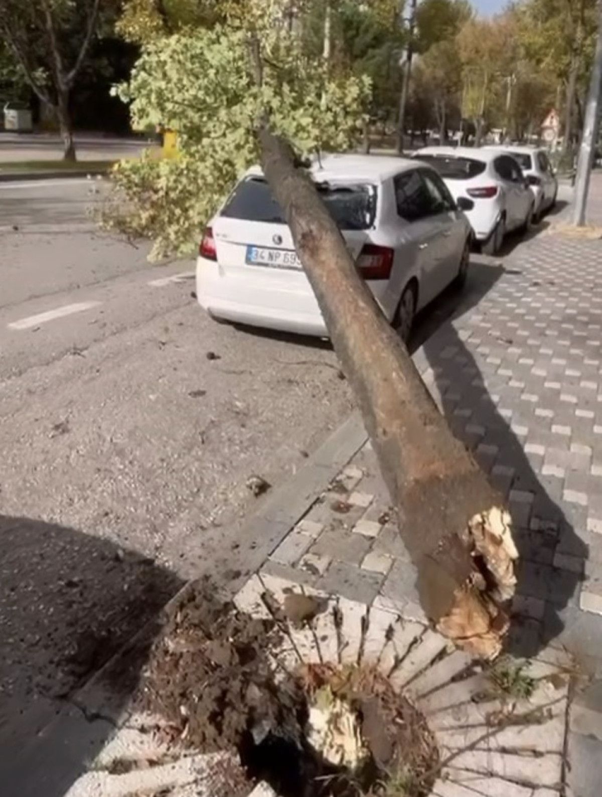 Bursa’nın şehir merkezinde, öğle saatlerinde lodosun etkisiyle yaşanan olayda, Merkez Osmangazi ilçesi Kükürtlü Caddesi üzerinde bir ağaç fırtınanın etkisiyle araçların üzerine devrildi. O anlar bir sitenin güvenlik kamerası tarafından saniye saniye kaydedildi.